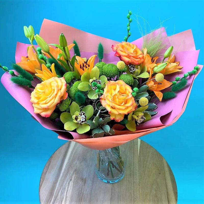 Всё великолепно. Цветы свежие, ассортимент достойный. Флористы мастера своего дела, великолепные букеты получаются. Юбиляр получила очень приятные эмоции.