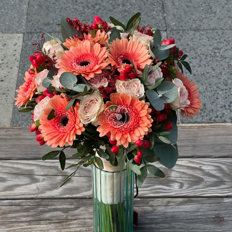 Мне очень понравилась оперативная связь после заказа онлайн, перезвонили буквально через три минуты. После сборки букет отправили фото на мое одобрение)